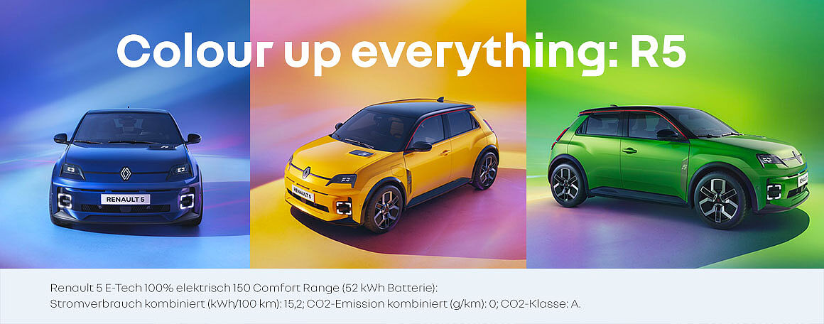 Die R5 Modellneuheit bei uns in der Autowelt Hartmann, jetzt die Auferstehung des legendären R5 unserer französischen Marke in poppigen Farben erleben. Jetzt schon einer unserer Modell-Bestseller!