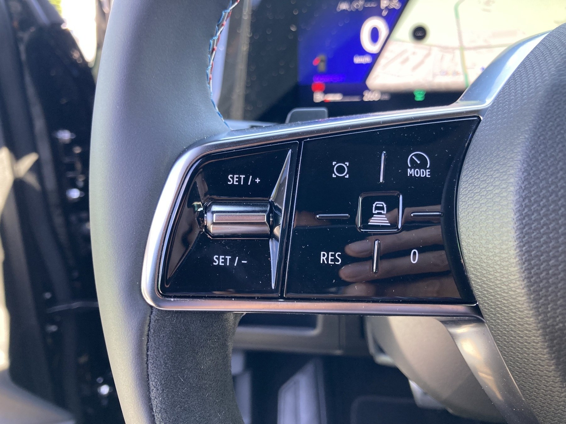 - Lenkrad aus Alcantara/TEP mit Nähten in Blau